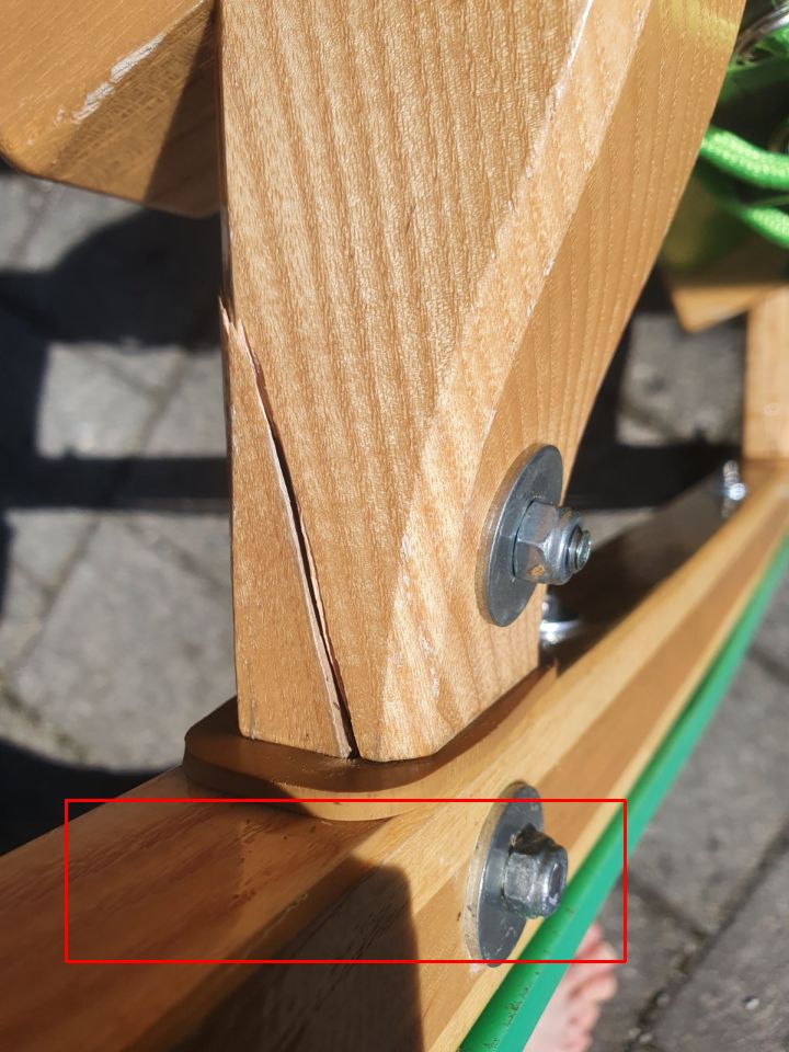 ist das stück (riegel), das in die kufe kommt, recht zersplittert. mit den schrauben hast du ja aber nur das obere teil vom bankerl zusammen gemacht, das oberhalb vom der kufe ist, wie ich es verstanden habe.