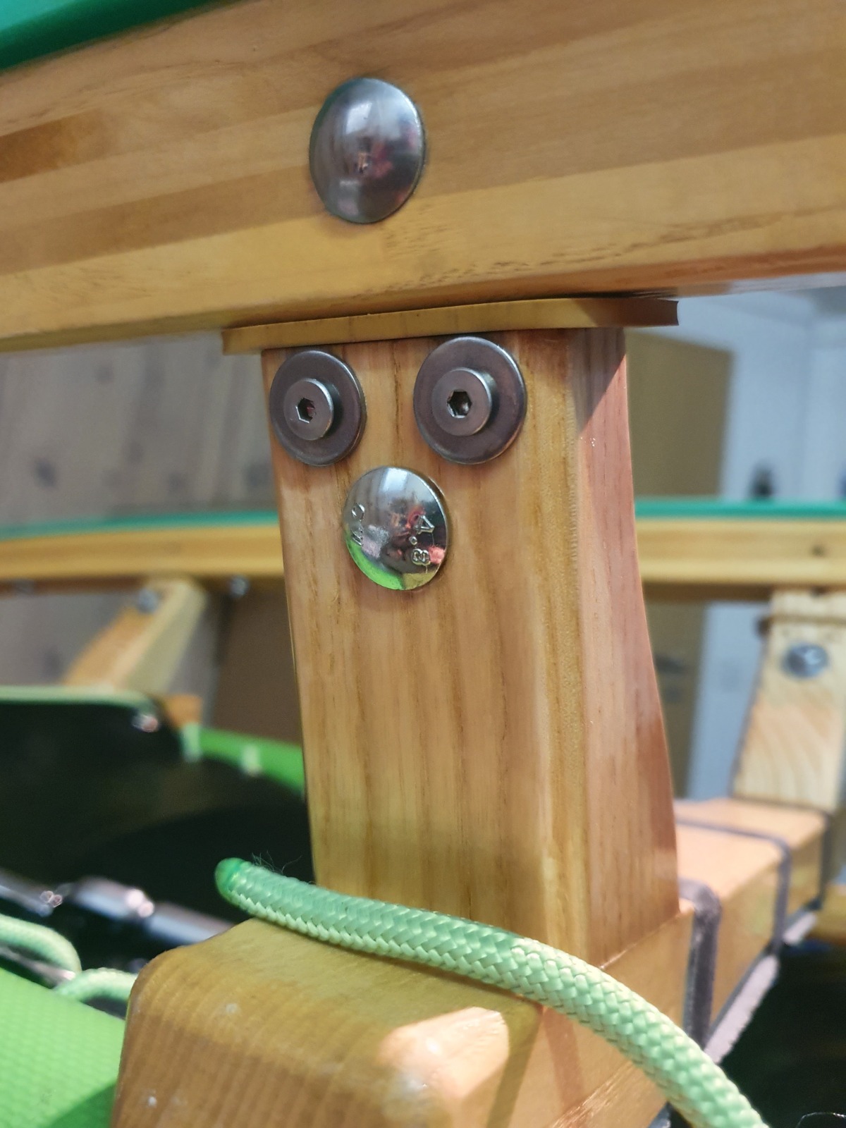 Du hast am Schraubenkopf der Senkschrauben eine Beilagscheibe verwendet und auf der Seite mit den Muttern Rosetten. Das macht doch keinen Sinn und gehört doch eigentlich andersrum, also Senkkopf zu Rosette und Mutter zu Beilagscheibe.