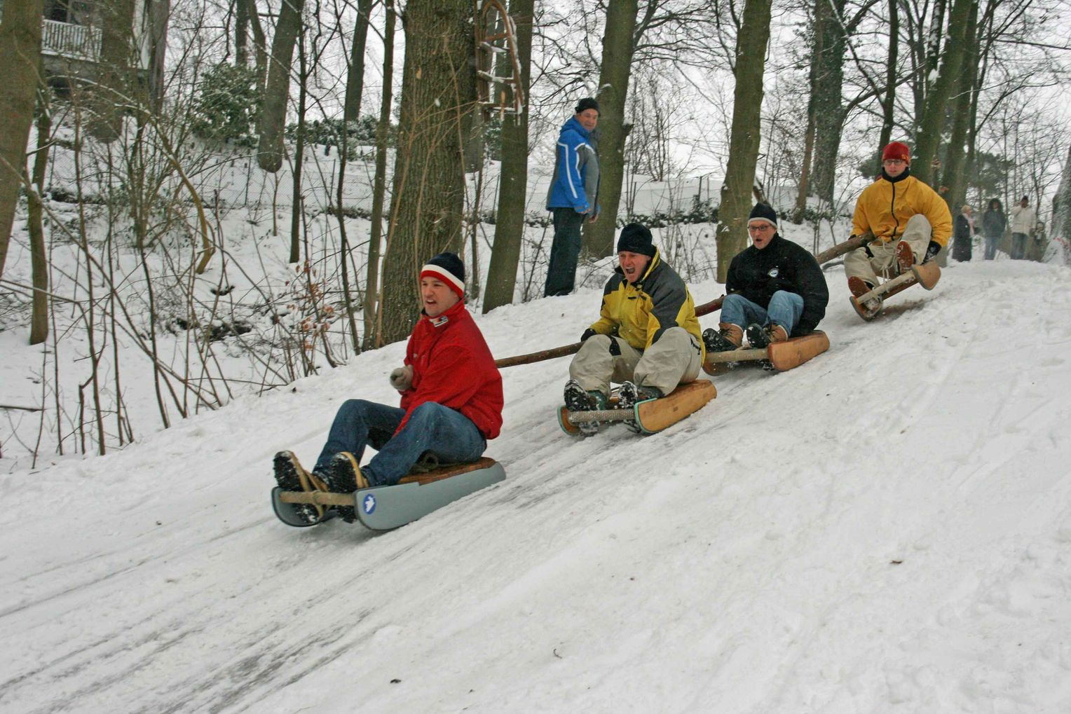 In Hamburg Blankenese braucht es zum rodeln auch keinen Schnee. Wenn es da mal 2 Tage Minus ist und der Nebel von der Elbe her zu Rauhreif wird, dann nennen sie das da schon "Schnee " . Letztes Jahr im Feb selbst erlebt . Angefrorener Boden etwas Rauhreif und los gehts ..