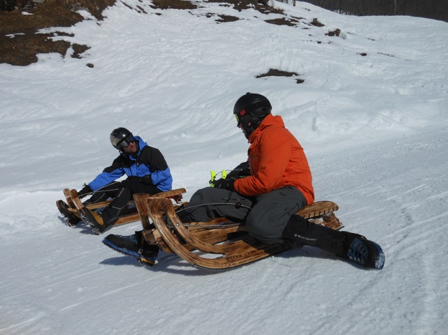 ..das sind schiesser (??) rodel, der mit der orangen jacke ist schreiner und macht die selbst, die sehen in echt noch viel krasser aus als auf dem foto...und der absolute wahnsinn! man meint die sind arg bockig oder nicht gut lenkbar, denkste!! hat viele extras auf ganz eigene art gelöst, super lenkbar, für hohe geschwindigkeiten der wahnsinn! ..und sehen sowas von geil aus...vom allerfeinsten, auch das geflammte holz, wow :woohoo: