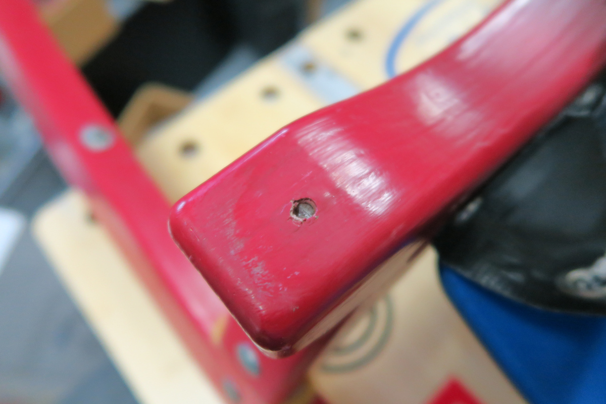 Schraube abgebrochen, welche das Bankerl mit dem linken Holm verbindet.