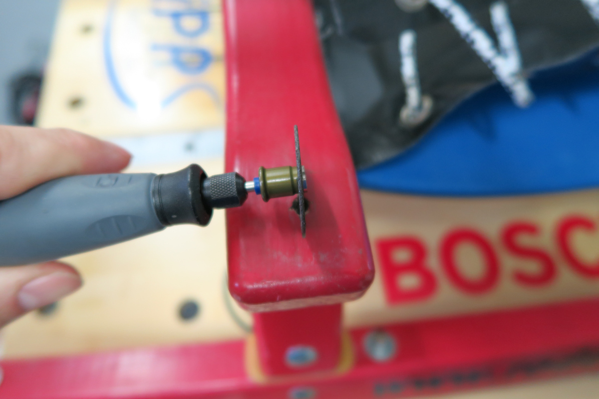 ). Das Holz hat sogar den Vorteil, dass es die Dremelscheibe führt.
