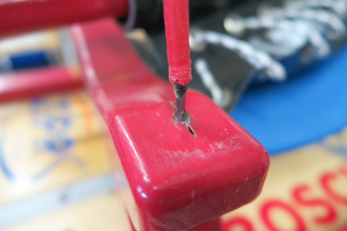 Aber nach einigen Fahrten haben die Stützen Risse bekommen ,also Schnell Schraube eingebaut