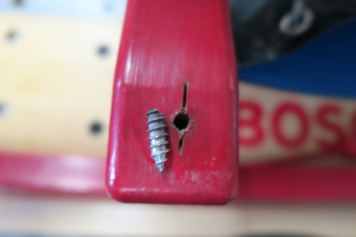 Die Schraube verstärkt das Holz zusätzlich durch die Lenkbewegung wird die Bankerl Stützen sehr stark verwunden (verdreht)