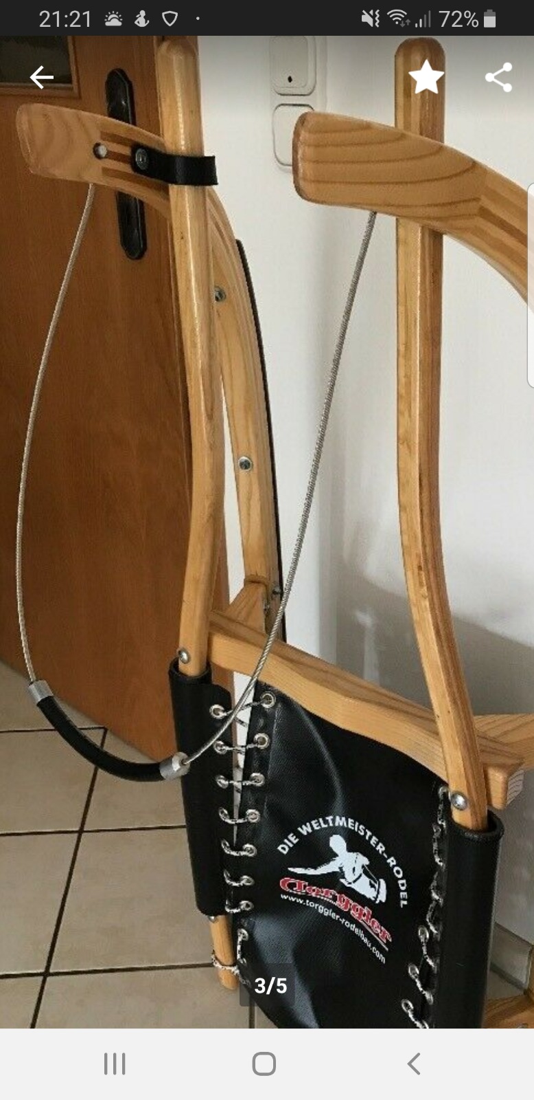 Der Holzmaserung nach ist das Holz oberhalb des Lenkseils 90 Grad gedreht.