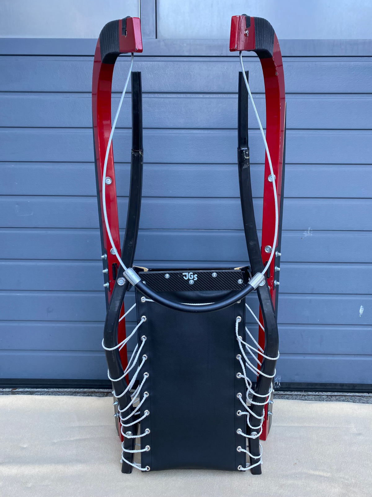 Der Verkauf erfolgt, da ich mir von Kainz G. eine längere ( 5cm länger, aber sonst baugleich wie die rote - siehe weisse Rodel im Bild ) Speedrodel bauen ließ, da ich mit meiner Köpergröße auf der Roten zuviel Druck nach hinten bringe. Meine Körpergröße ist 191cm bei 94 kg.