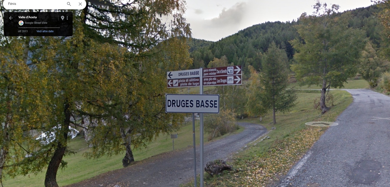 Wunderschöner Ort, an dem einst die Rennstrecke Combasse stand, oberhalb von Fenis. Dort steht noch immer dieses neue Schild, das auf eine Rodelbahn hinweist.