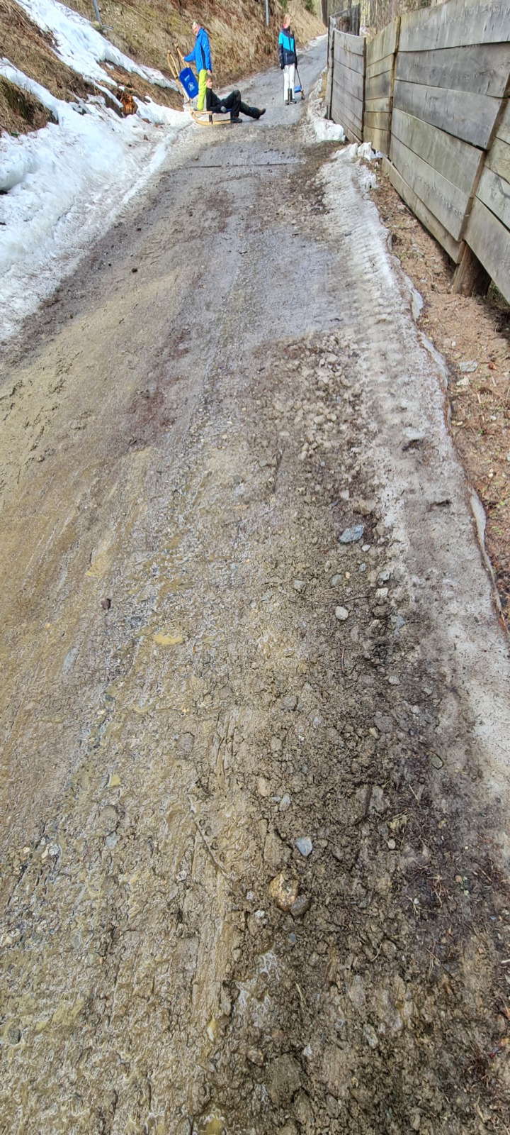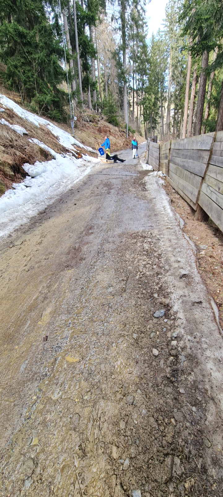aus der Erfahrung der vergangen Jahre hatten wir den Rosskopf links liegen lassen, nachdem wir gesehen hatten, wie die anderen unten ankamen, also der Schneematch überall war, nicht nur am Rodel sondern auch auf der Kleidung, heißt also, viel Schneematch auf der Bahn …