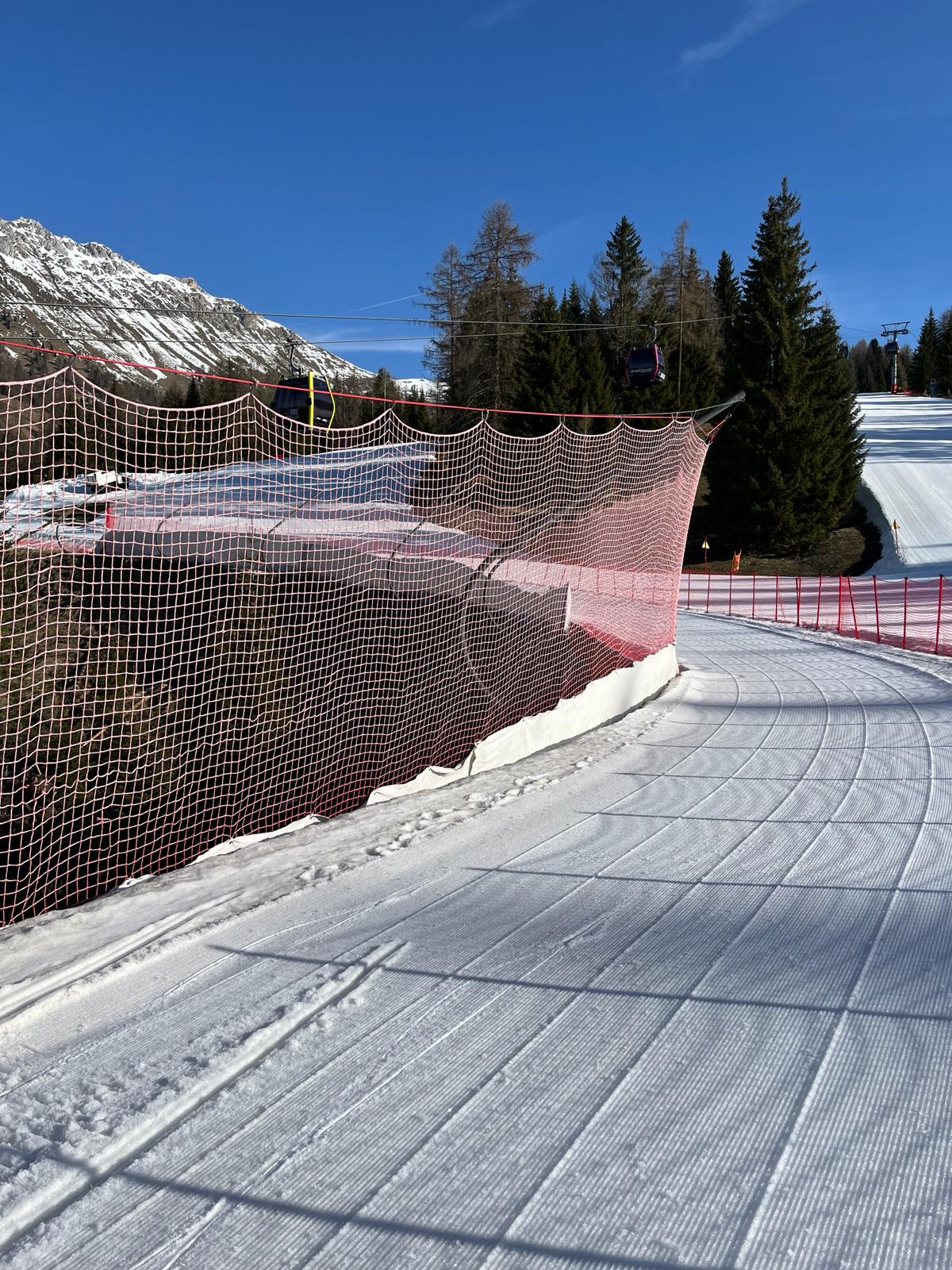 Die Strecke war aufgrund der anhaltend heißen Tage, gefolgt von kühlen Nächten, völlig zugefroren. Endlich können Sie völlig sicher einen vereisten Hang hinunterfahren. Auf der Geraden liegt der Schlitten stabil und fährt perfekt geradeaus. In Kurven kommt es nicht vor, dass man geradeaus fährt, weil der Schlitten in eine Spurrille gerät.